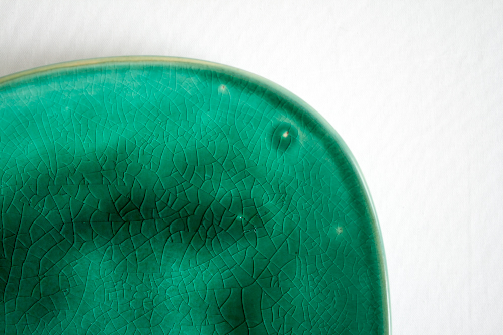 Turquoise en ovaalvormig, zo lijkt dit bord net op een juweel.